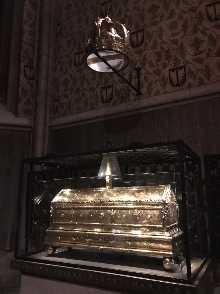 Today's celebration was from the Middle Ages until 1901 Ericus translatus. What was celebrated was that St. Erik's bones were transferred on 24 January 1273 (lat. translatus = transferred) from Old Uppsala Church to the new cathedral in Uppsala. The cathedral became a place of pilgrimage and the casket with Erik's relics was moved every year around the fields on the Uppsala plain to guarantee good annual growth. The medieval Uppland Erik cult is the explanation why the surname Eriksson is more common in Uppland than in other Swedish landscapes.