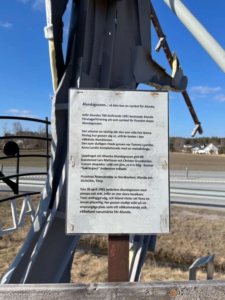 Alunda is the most rich parish regarding ancient monuments with approx. 5,000 ancient monuments. The Alunda moose, a stone ax from the Stone Age, has been found here. The parish has an area of approx. 148 km2 and a population of approx. 4,135 inhabitants. It is located southwest of Östhammar and is a flat area in the south and southeast with hilly forest area in general. Alunda parish is flowed through by Olandsån (35 km.). There are no major lakes in the parish. County road 288 (between Uppsala and Östhammar) runs through the parish. The name is first dated in 1291 (Adalundum) and comes from adhal (main, noblest) and lund, probably "sacred grove in Oland". From the parish comes the Alunda song, a folk song with lyrics by A. A. Afzelius (1785-1871).