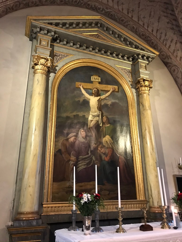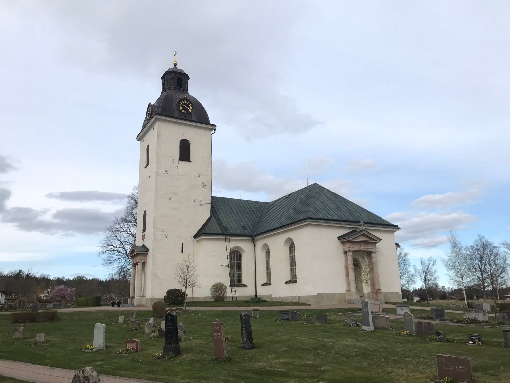 3. Alunda kyrka från 1200-talet står vid södra infarten och är väl synlig över hela slätten. Den tillhör Alunda församling inom Uppsala stift. Runstenarna U1126, U1127 och U1128 ligger intill kyrkan.