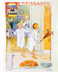Vårt ord fastlagen är en förvrängning av det lågtyska ”Vastelavent” med betydelsen fasteafton, dvs. det vi idag kallar fettisdagen. Denna tid före fastans början har i många katolska länder nere i Europa varit en festlig tid fylld av karnevalsliknande upptåg ända sedan medeltiden. I Frankrike firar man mardi gras som ju betyder fettisdagen och i Italien, framförallt i Venedig, firar man med karneval som ju betyder just ”farväl kött”! Karneval firas också i New Orleans samt i Rio de Janeiro. Men varför fettisdagen då? Jodå, man skulle proppa sig mätt med fet mat denna tisdag för att ha reserver under fastan 😛 I många svensk bygder sades ”sju mål mat i varje vrå och ett mitt på golvet”! Det åts rejält med soppa och fläskkorv, ”ål och kål i var vrå” som det sades i Skåne samt blodpannkakor och renköttsoppa i Lappland.