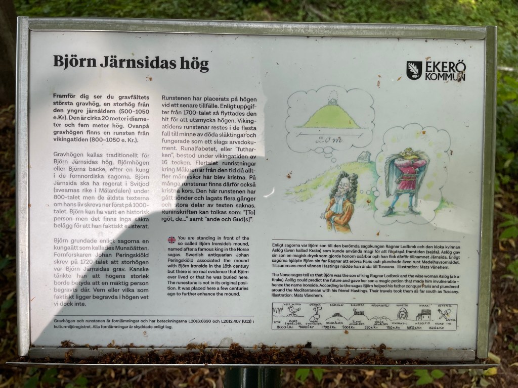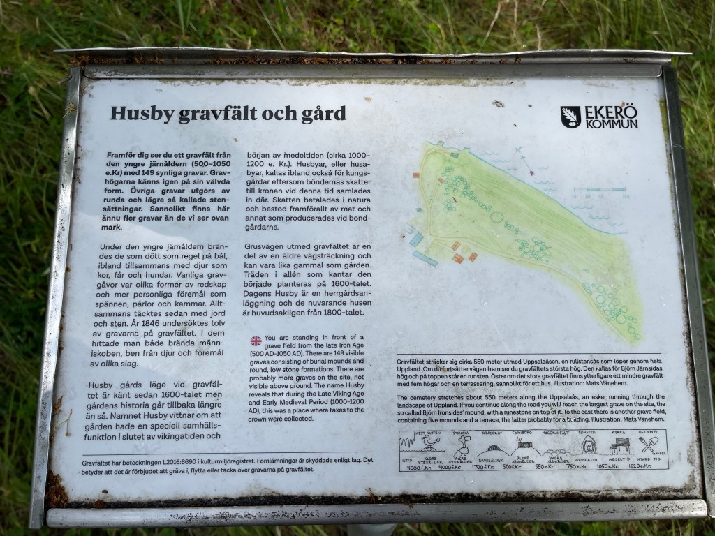 - Husby gård omtalas först 1281 (Husaby) och nuvarande byggnad är från 1700-talet. Till Husby har även Österås gård som ligger på sydöstra Munsö hört, men den avsöndrades på 1880-talet. Invid Husby ligger ett stort fornminnesområde med ca 150 fornlämningar från vikingatid varav den största och mest kända är Björn Järnsidas storhög. Kan det vara så att den ökände Björn Järnsida, son till Ragnar Lodbrok, har bott på Husby och är begraven i högen? Det kan vi inte veta med säkerhet, men den ätt som Erik Segersäll och Olof Skötkonung tillhör har faktiskt kallats för Björn Järnsidas ätt eller Munsöätten! Vid Munkudden, öster om Österås gård, står runsten U 14 från 1000-talet. Då gården är privat har jag inte kunnat ta mig fram till stenen.