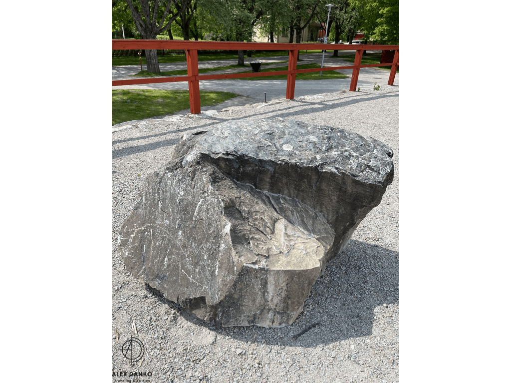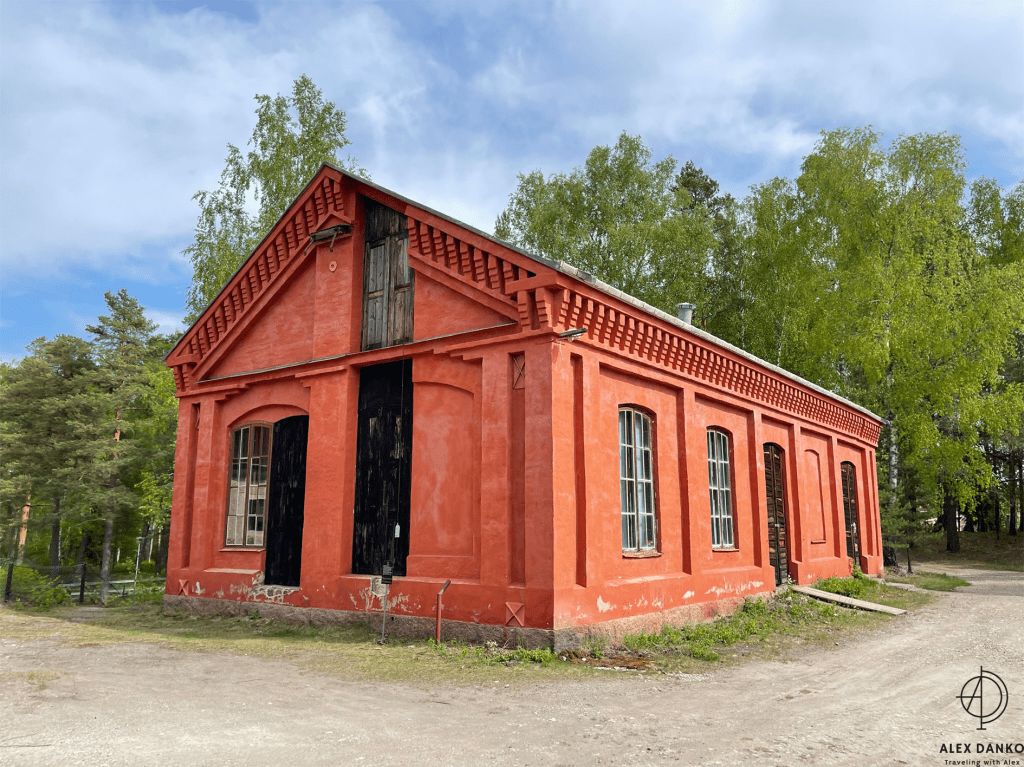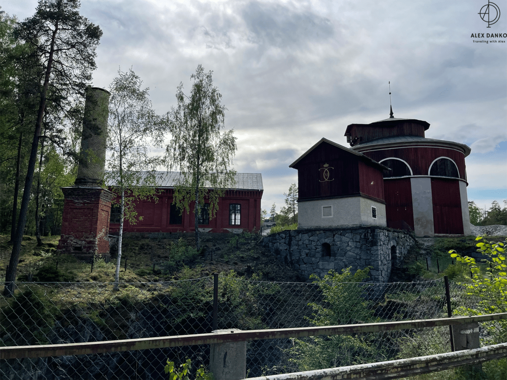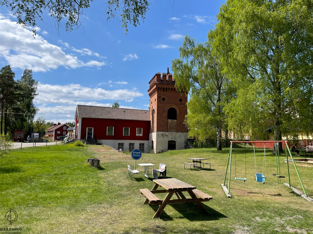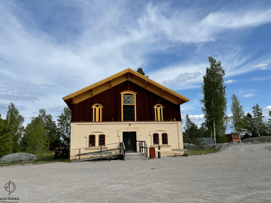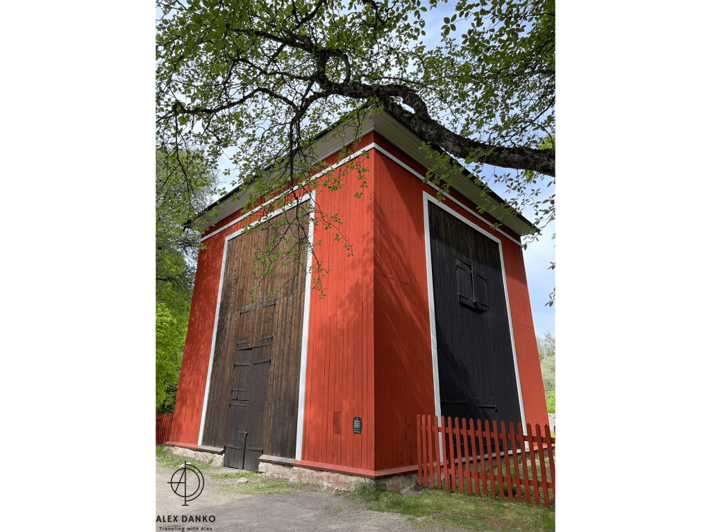 Från slutet av 1500-talet och fram till 1890-talet var vattenkraft den viktigaste energikällan vid gruvan. Från stora vattenhjul leddes kraften direkt eller med stånggångar till spel och pumpar. När detta turbintorn byggdes vid 1870-talets slut introducerades en ny teknik. Vattnet drev en stålturbin som hade högt varvtal. Kraften kunde efter nedväxling ledas vidare med rentransmissimer eller linspel och användas i verkstäder och produktionsbyggnader. Kring sekelskiftet 1900 kopplades en elektrisk generator till turbinen. Därigenom fick man elektrisk belysning och kraft till mindre områden. Gruvkontorshuset byggdes år 1823-1832. Konststigaren var den första som bodde här. Konststigaren var förman för konststaten som ansvarade för reparationer och byggnadsarbeten vid gruvan. Omkring 1920 flyttade gruvkontoret in i detta hus. Från 1644 till 1883 var detta gruvans viktigaste byggnad. Hit leddes vattnet från det stora sjösystemet och här drev det två bröstfallshjul av trä med ca 12 m i diameter. Kraften överfördes via stånggångar till pumpar och uppfordringsverk vid Knektschaktet, 140 m och Makalösschaktet, 90 m härifrån. Under vissa perioder fanns stånggångar även till Carl XI:s schakt samt till Nygruvan, ca 400 respektive 600 m långa. Det första hjulhuset på platsen byggdes 1644. Det byggdes om fullständigt flera gånger under 1700-talet och fick sin nuvarande form omkring 1890. Då hade man rivit vattenhjulen med tillhörande rännor. I juni 1994 skadades tyvärr byggnaden svårt av en brand. Klensmedjan byggdes i korsvirkesteknik och tegel år 1807. Smedjan hade ursprungligen två härdar och här tillverkades bl a handredskap som malmrakor, brytspett, bergkilar, borrstål m m. På andra våningen fanns smedjans järnlager där man förvarade råmärken i olika dimensioner till smidet. Tidigare fanns en träbro upp till porten på andra våningen. Från 1920- till 1950-talet användes smedjan som tvättstuga för dem som bodde på gruvområdet. Andra våningen fungerade då som torkvind. Kuskbostadens äldsta del är byggd år 1800 med en tillbyggnad från omkring 1900 och inrymmer idag två rum och kök. Fasaden har tidigare varit spritputsad. Huset har genom åren använts till spruthus, kontor och bostad. Här bodde gruvans sista kusk som hette Ernst Johansson. Drängstugan uppfördes 1850 som brygghus, bod och vedlider i stället för de byggnader som brann ned natten till den tredje maj samma år. Till bygget användes både gammalt och nytt virke. Brygghuset nyttjades av gruvstigarens hushåll för tvätt, bak och öltillverkning. Huset är ombyggt till bostadshus. Drottning Christinas schakts spelhussänkning visar grundmurar eller numera rivna, vattendrivna bergspel. Trärännan som förde driftsvatten till spelet är sedan länge borta, men returkanalen (som är tillmakad i berget) finns kvar och mynnar under Gamla Hjulhuset. Det första bergspelet började anläggas 1662 och stod färdigt tre år senare. Vattenhjulet var av bröstfallstyp med en diameter om 11,3 m och en bredd av 2,7 m. Ett nytt bergspel togs i bruk 1828. Detta spel hade ett vattenhjul av överfallstyp med en diameter om 5,9 m och en bredd av 1,8 m. Under år 1890 avvecklades spelet helt. Christina schaktets bergspel var ett av silvergruvans viktigaste uppfordringsverk i 225 år. Drottning Christinas schakt började sänkas år 1650 och på tio år nåddes ett djup på 190 m. På denna nivå fanns stora malmtillgångar som bröts under senare hälften av 1600-talet. Schaktet sänktes sedan i olika etapper ner till 257 m och blev i samband med det centralschakt eftersom det kom i kontakt med samtliga nivåer i gruvan. Huvudsakligen användes schaktet för uppfordring av malm och gråberg, men också för transport av gruvved, material, hästar och gruvarbetare. Drivkraften för uppfordringen var två stora vattenhjul som fanns i spelhussänkningen strax söder om schaktet. Idag återstår endast grundmurarna av Spelhuset. Den nuvarande laven (överbyggnaden) byggdes 1858 och har blivit en symbol för Sala Silvergruva. Detta block består av dolomit från Finntorpsbrottet, en kilometer sydväst om platsen. De ringformiga mönstren i blocket är en fossil av blågröna alger. De finns i grunda hav och när de växer uppåt i skikt mot ljuset bygger de upp ringformiga pelare. Det sker med hjälp av fin karbonatsand. Fossilen i detta block har det geologiska namnet stromatoliter, av de grekiska orden stroma=bädd och litos=sten. Åldern har beräknats till mellan 1900 och 2000 miljoner år. Det var dessa organismer som satte igång fotosyntesen, med hjälp av vatten, koldioxid och solljus. Wow 🙂Anfarten är uppförd över ingången till 60 metersnivån i gruvan. Ordet ”anfart” är tyska och betyder begynnelse, dvs där man påbörjar nedstigningen till gruvan. Denna nedstigning tillkom i slutet av 1700-talet och den nuvarande överbyggnaden uppfördes 1869-70. Syftet med byggnaden var att gruv- och skrädningsstigarna (förmännen) fick ett kontor och bättre uppsikt över uppfordringen och malmskrädningen (sorteringen). I mitten av rummet tände arbetarna sina tjärbloss (facklor) och oljelampor för att därefter påbörja nedstigningen till sina arbetsplatser. Numera finns belysning, betongtrappor och stålstegar ner till 60-metersnivån. Skrädhuset byggdes i slutet av 1810-talet. Här inne arbetade 10-20 personer, många var kvinnor och äldre pojkar. Man skrädade (sorterade) malmen och slog sönder malmstycken till hanterlig storlek. Gråberg, varp (ofyndigt berg) kastades åt sidan och tippades i stora högar runt om på gruvområdet. Sedan schaktlaven över Christinaschaktet tillkommit 1858 byggdes en rälsbana därifrån över till Skrädhusets övervåning där malmen kördes in. En del malmsortering gjordes också på planen (Gruvtorget) utanför Skrädhuset. Huset byggdes ut 1994-95. Hästen var förr oumbärlig för gruvdriften. Alla transporter gjordes me
