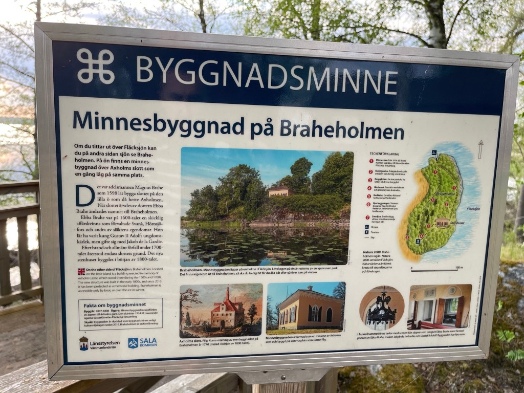 På vänstra sidan av Fläcksjön, snett mitt emot Fläckebo kyrka, ligger idag Axholms gård som haft en intressant historia. På en liten holme i Fläcksjön kallad Braheholmen, ett par hundra meter ifrån huvudgården Axholm, låg på 1600-talet Magnus Brahe Axholms slott.