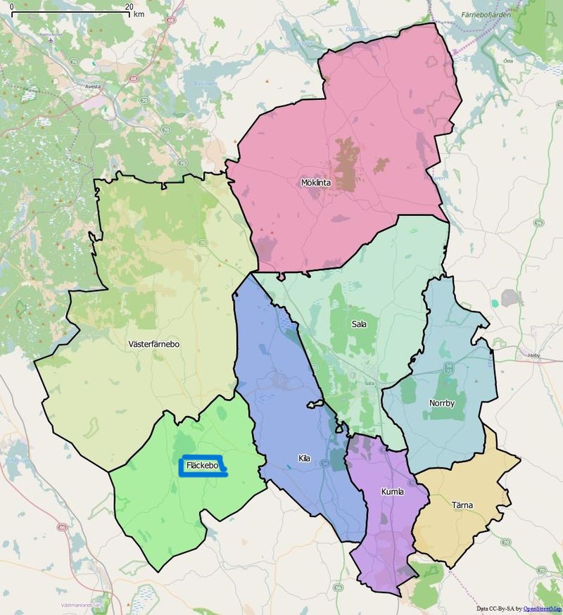 Administrativ tillhörighet: Sala kommun i Västmanlands län (Norrbo härad i NÖ Västmanland); Västerfärnebo-Fläckebo församling och pastorat inom Västerås stift