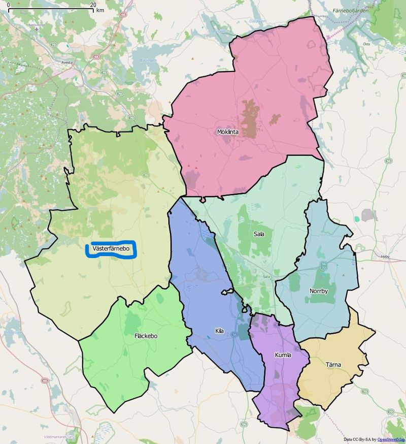 Administrativ tillhörighet: Sala kommun i Västmanlands län (Vagnsbro härad i N Västmanland); Västerfärnebo-Fläckebo församling och pastorat inom Västerås stift