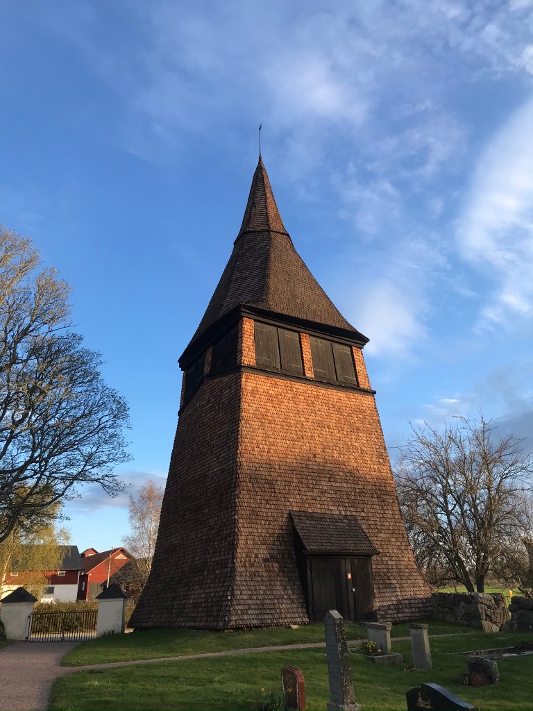 Klockstapeln byggdes mellan 1660 och 1664.Runsten U 840 sitter inmurad i sakristians östra vägg. Inskriften lyder: ”Homlfrid och Folkvi lät resa denna sten efter Torsten, sin fader.” Ristaren anses vara Öpir.Runsten U 841 sitter inmurad i kyrkans södra vägg. Inskriften lyder: ”… lät resa stenen … sin fader.”