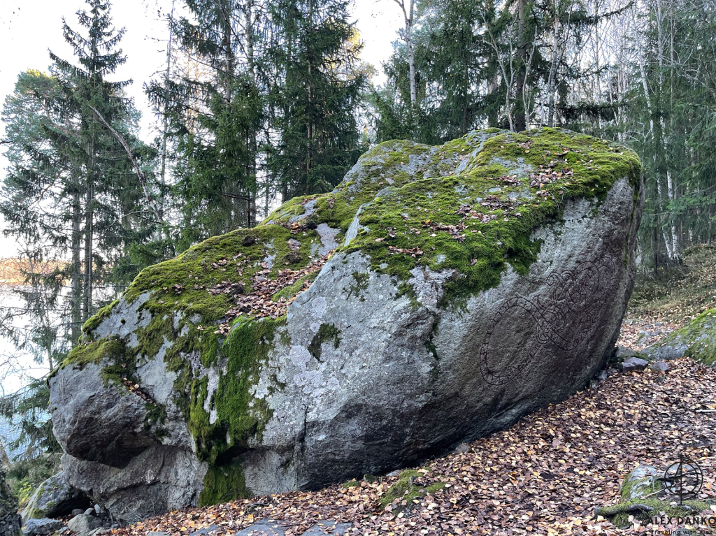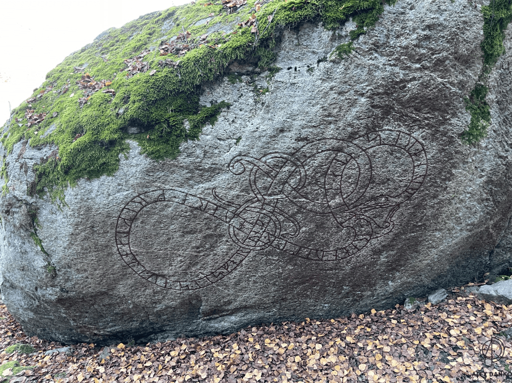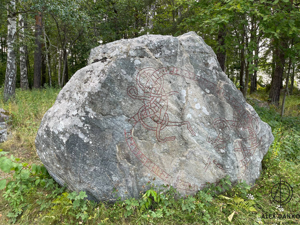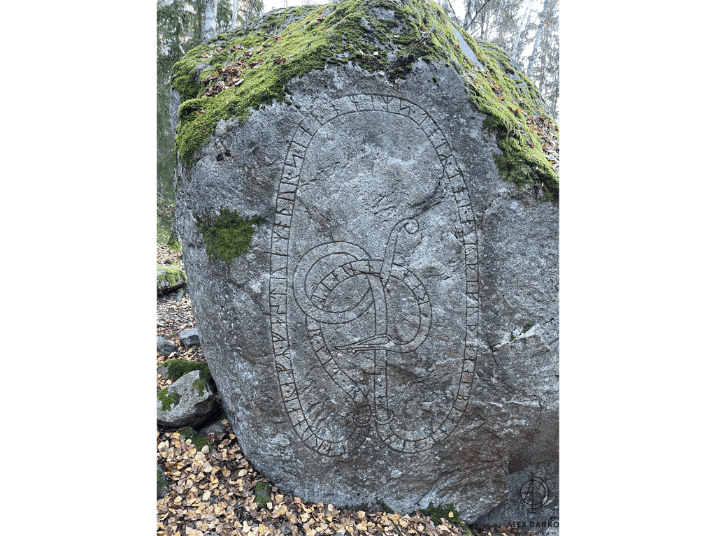 Lite längre söderut, ca. 1 km från kyrkan, vid Edssjöns västra strand, ligger ett block med den intressanta runristningen U 112 som härstammar från 1000-talet. Här vid den gamla färdvägen mellan bygderna i Sollentuna och Ed låg flyttblocket väl synligt för förbipasserande. Texten på södra sidan lyder: ”Ragnvald lät rista runor efter Fastvi, sin moder, Onäms dotter. Hon dog i Ed. Gud hjälpe hennes ande”. Texten på västra sidan lyder: ”Runor lät / Ragnvald rista. / Han var i Grekland, / han var krigarskarans hövding”. Ragnvald har varit en uppländsk storman som av inskriften att döma varit hövding vid den bysantiske kejsarens livgarde i Miklagård, dvs. Istanbul. Genom sin mor Fastvi har han sannolikt hört till den berömda Borrestasläkten i Orkesta ca 2 mil nordöst om Ed. Ristningen är skickligt utformad och texten har givits en rytmisk avslutning. På blocket finns sockennamnet Ed nämnt för första gången. Under vikingatiden var man tvungen att dra båtarna över land några hundra meter om man ville fortsätta segla från Edssjön och vidare i Mälaren, därav namnet Ed som betyder landtunga mellan vatten.