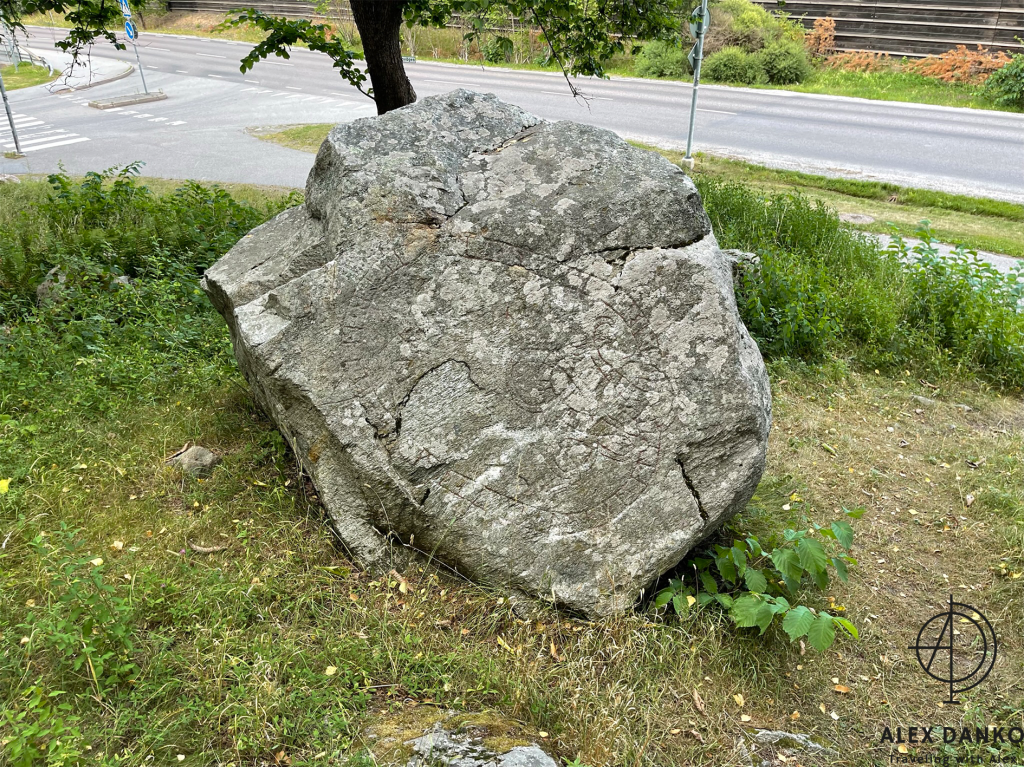 Längre norrut, intill korsningen mellan Ladbrovägen och Runbyvägen, efter järnvägsstationen, står runsten U 114 från 1000-talet (också kallad Ladbrostenen). Inskriften på framsidan lyder: ”Ingrid lät göra ladbron och hugga stenen efter Ingemar, sin man, och efter Dan och Banke, sina söner.” Inskriften på baksidan lyder: ”De bodde i Runby och ägde där gård. Krist hjälpe deras själ. Detta skall vara till minne av männen, så länge människor leva.” Den ladbro, dvs. vägbank över sankmark eller vattendrag, som omtalas i texten har säkert gått över vattendraget strax öster om ristningarna, där vägen mellan Ed och Hammarby gått fram.