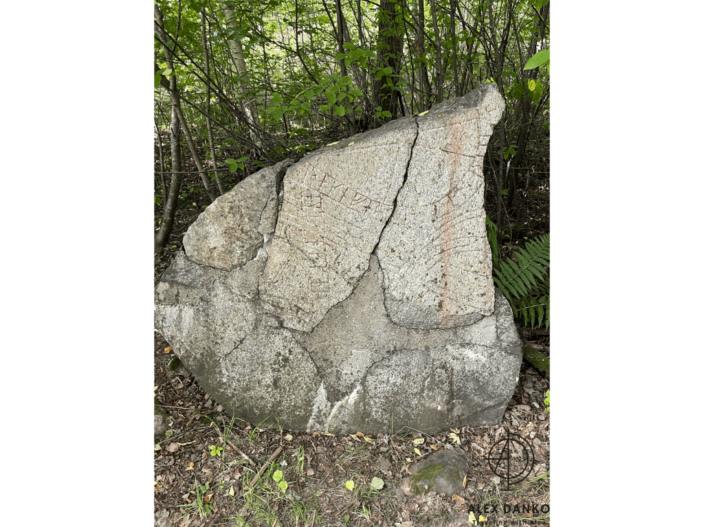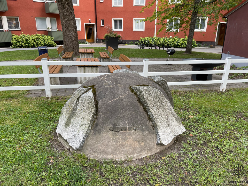 I korsningen Bills backe och Hagvägen, nära Runby centrum, ligger flera runstensfragment ur U115. Inskriften lyder: ”… Finnvid, Ragnfrids son, lät…”.