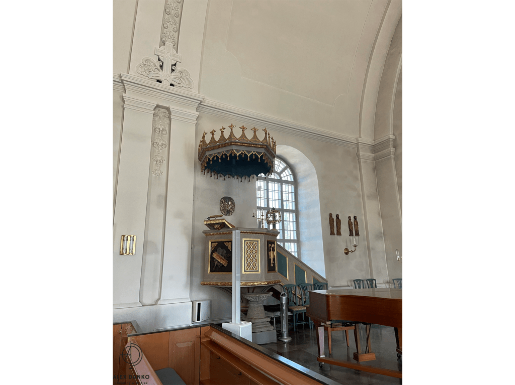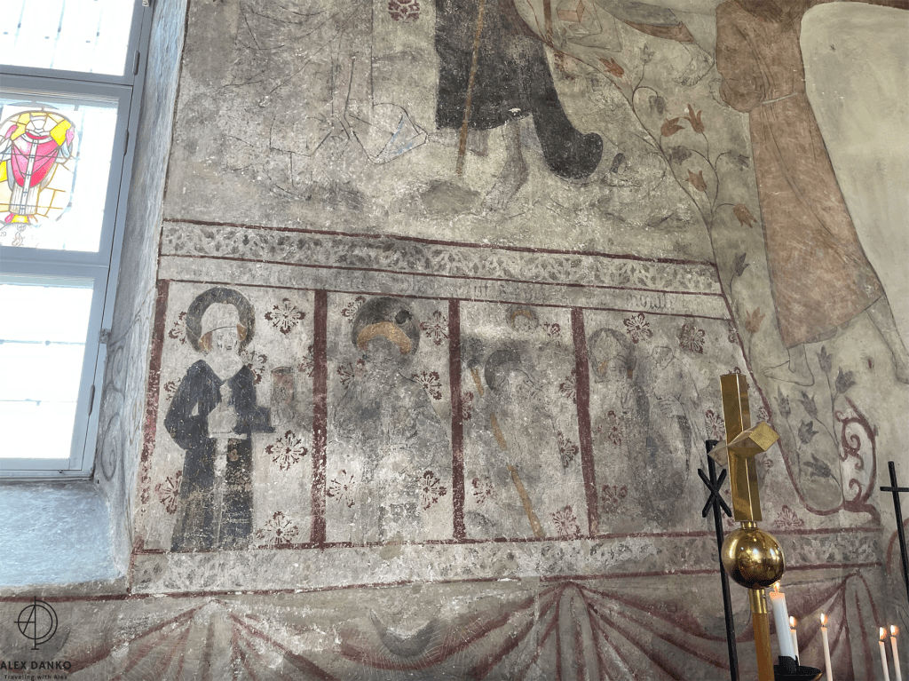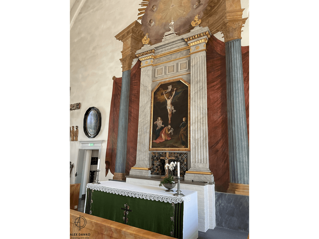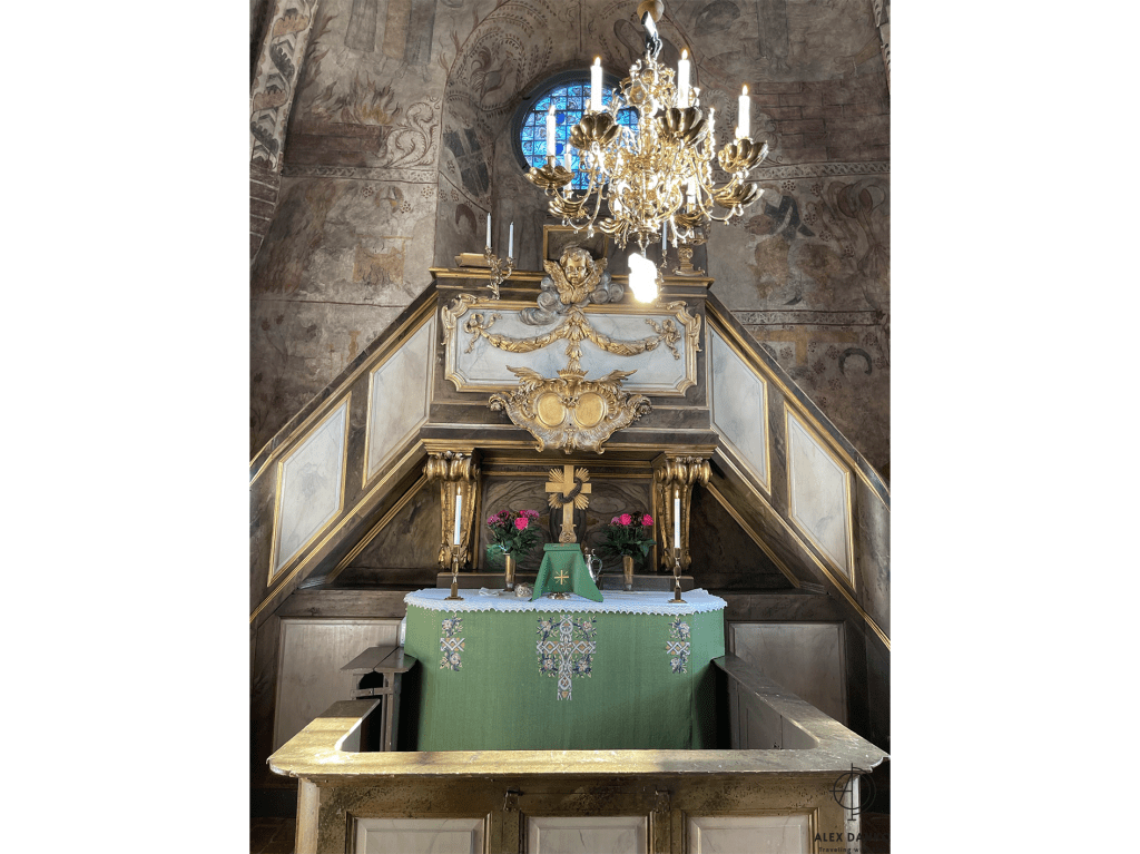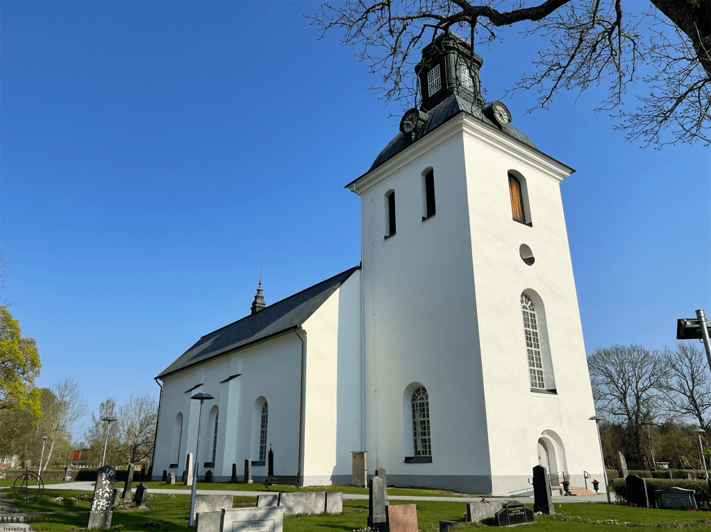 KURIOSA: Vid södra kyrkväggen ligger en gravvård som är det enda som är kvar från den på medeltiden anlagda kyrkogården. På den stora gravstenen i mitten står följande: ”Efterkommande unna oss / detta rum / låt tvenne maka / tillsammans här hvila / til des änden kommer”. På den lilla stenen till vänster står följande: ”Till hogkomst af den bästa / maka C.L.E. lät M.S. resa / denna sten 1783. / Ruths B. I:V. 16.17.” Vilka människoöden döljer sig bakom dessa inskriptioner?