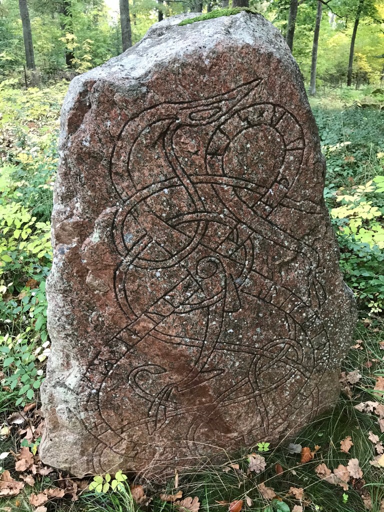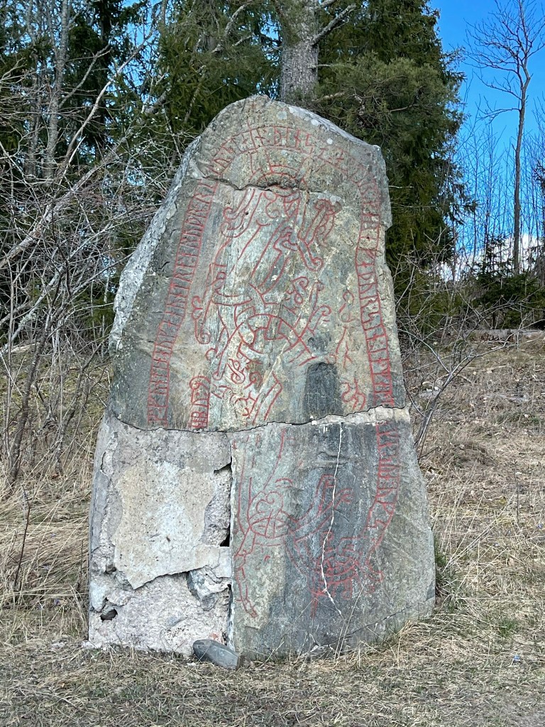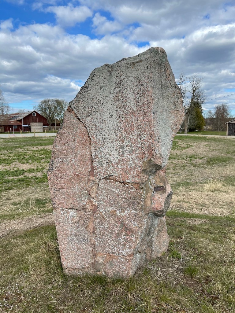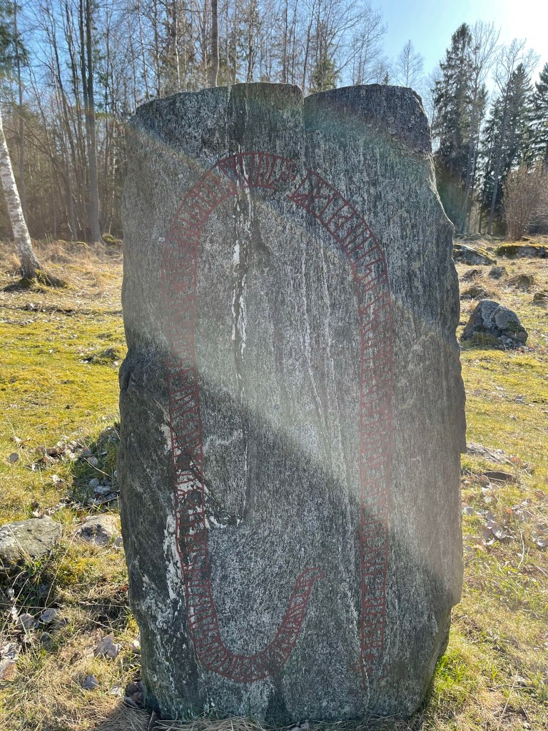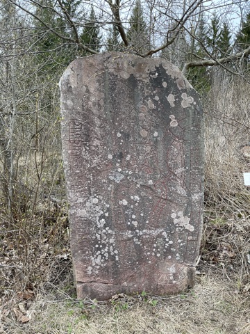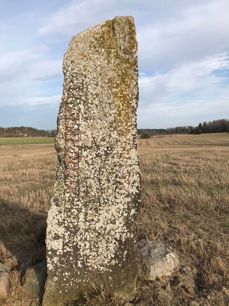 The rune stone stands probably in its original location. The inscription gives the oldest evidence of the parish name Funbo. Tägn was a good farmer, ” a funum ”. The form is dative plural. ” In Funum ” were living funbo-locals. Tägn, who got this rune stone in his memory, is the oldest in a Funbo family we can follow for three generations. Here we get to know Tägn and his two sons Hörse and Kättil.