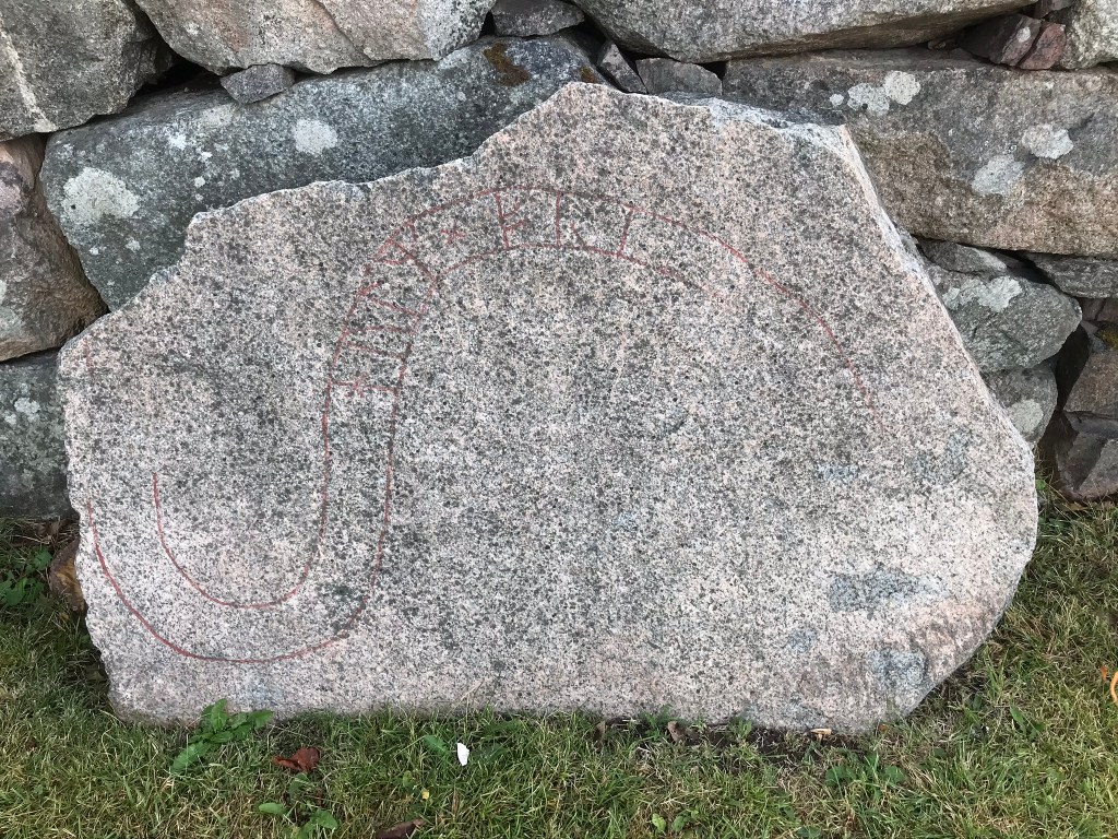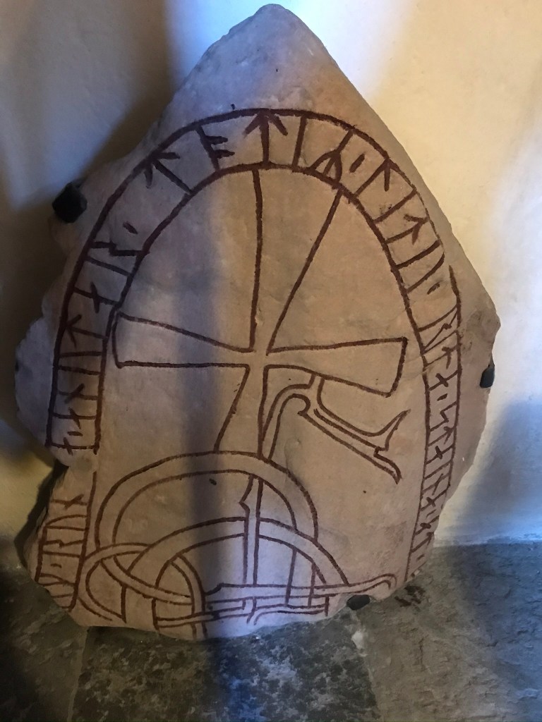 The runes are inverted, so-called ” turnaround-runes ” and the entire inscription should be read from right to left.