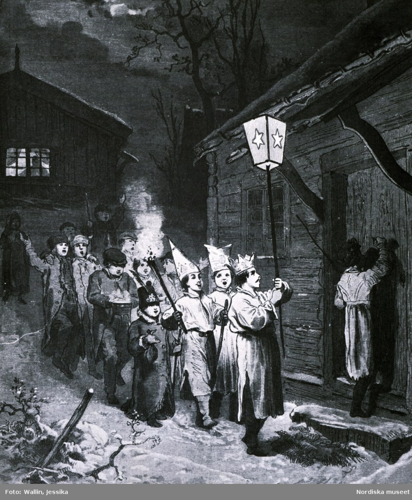 The female name Lucia is Latin and a feminine form of Lucius which is formed from "lux" light (Lucia means "the shining"). The name was first used in Sweden in 1254 (also in the form Lussi). Celebrating Lucia in Sweden has nothing to do with the Sicilian saint. The background is that December 13th happened to be the winter solstice in the Julian calendar that was valid in Sweden until 1753. Lucia night was thus the longest night of the year. The West Swedish Lucia custom with a white-clad female Lucia with candles that invites the others in the family to breakfast is from the 1760s Västergötland and was spread throughout the country.