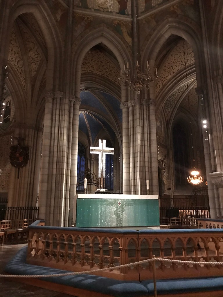 The organ built by Fratelli Ruffatti from Italy hides many mural paintings and commemorative plaques. Behind it, the Rose Window, the church’s oldest window, constructed in Gothic style, more probably of the French architcts. It resembles the windows from Notre Dame in Paris. The Southern church window, Sweden’s biggest church window, also named The Son’s or The Saviour’s window. Itis 18 x 7 m, the glas area is 50 km².