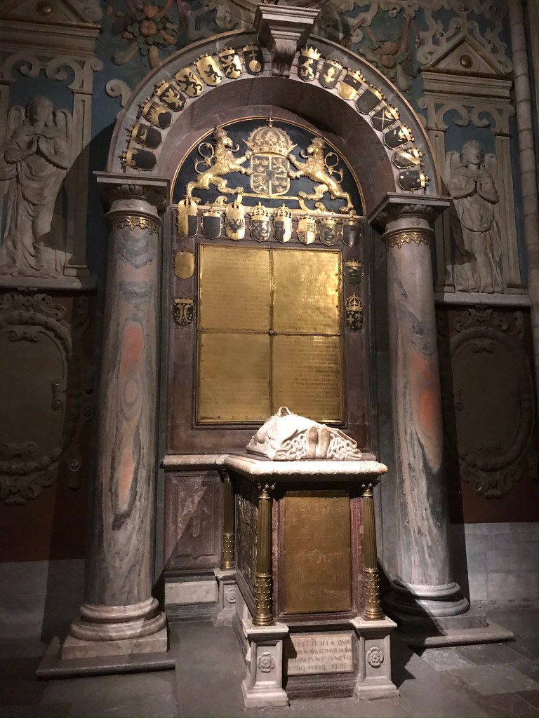 Monument over Queen Katarina Jagellonica (1526-1583), wife of King Johan III, made by Willem Boy (ca 1520-1592). The Queen is buried in the chapel.Monument over King Johan III (1537-1592), made by Willem von dem Block (d. 1628). The story behind the monument is very interesting: Block never got paid for his job because nobody wanted to pay for it after his son’s, Sigismund’s, deposition in 1599. Gustav III paid for the monument was delivered in 1783. However, it was installed in 1818 and in Johan’s wife’s chapel, not in the Vasa chapel, where Johan actually is buried.